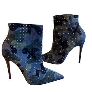 Christian Louboutin Suede Camouflage So Kate Booty Plume 100 Boots EU 37 US 7