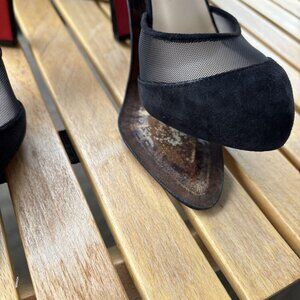 Christian Louboutin Suede Mesh Open-Toe Pumps