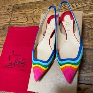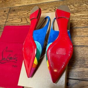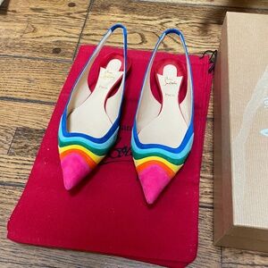 Christian Louboutin Suede Sling back Flats - size 39 - barely worn - great condition - beautiful bright rainbow colors - comes w. original box and dust bag