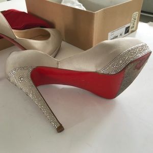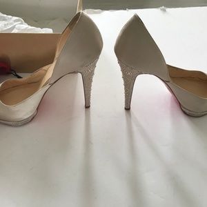 Christian Louboutin Eugenie 140 Satin Pumps with eye-catching Swarovski crystal embellishments.