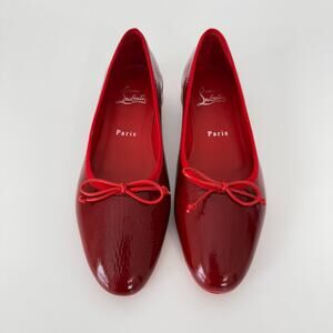 Christian Louboutin Sweetie Jane Flat Ballet Shoes Patent Leather Loubi Red 37.5