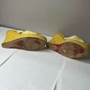 Christian Louboutin Sz 6 Yellow Ribbon Espadrille Wedges Heels Backless Sandals