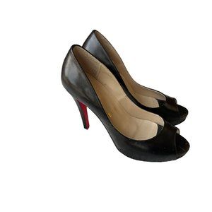 Christian Louboutin Sz.7.5/38 Black Leather Very Prive Peep Toe Platform Pumps