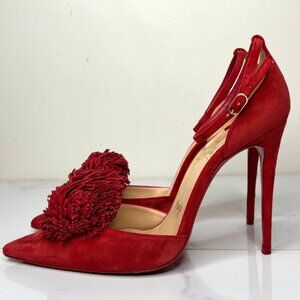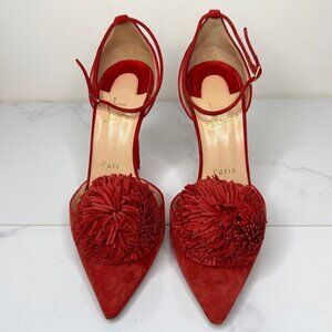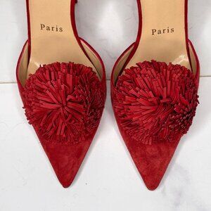 Christian Louboutin TSAROU Red Suede 100mm Fringe Tassel Pointy Pumps Heels 37