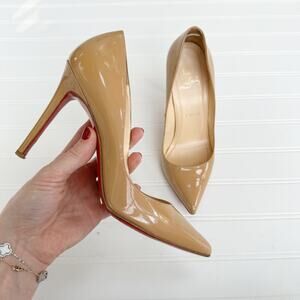 Christian Louboutin Tan Patent Leather Pointed Toe Pumps Nude Size 37 Heels