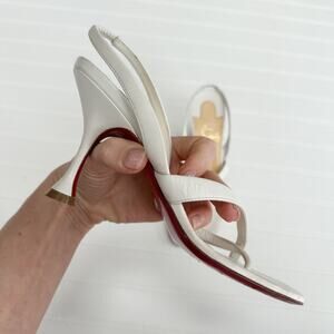 Christian Louboutin Taralita White Leather Slingback Thong Sandal Heels 36.5