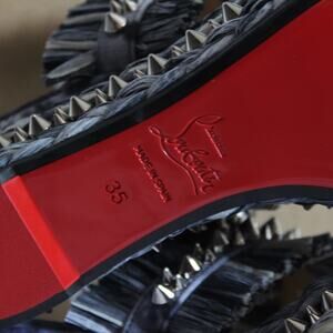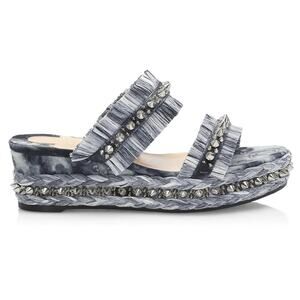 Christian Louboutin Jeans Punk Tie-Dye Raffia Straw Spike Slip-On Wedge Slides