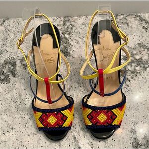 Christian Louboutin Tipika Sandals High Heel Beaded Leather Size 37