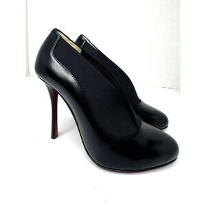 Louboutin Toot Couverte 100 Black Elasticized Leather BOOTIES PUMPS Heels size EU 36.5