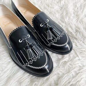 Christian Louboutin Trompinetta Trompe L'oeil Loafers 38.5 Black with White Trim