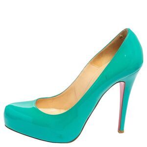 Christian Louboutin Turquoise Patent Leather Rolando Platform Pumps Size 37