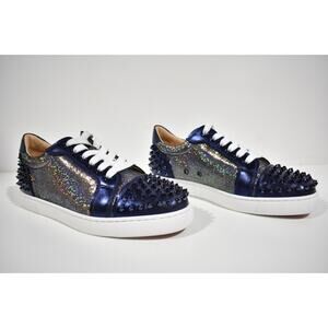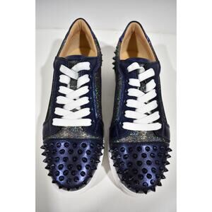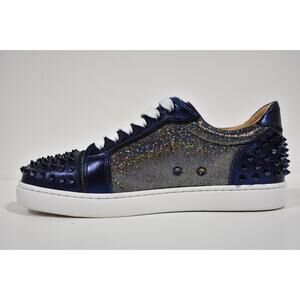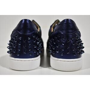 Christian Louboutin Vieira 2 Flat Spikes Blue Night Lace Up Low Top Sneaker 41