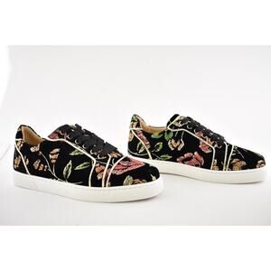 Christian Louboutin Vieira Orlato Flat Black Velvet Lace Up Low Top Sneaker 38