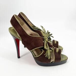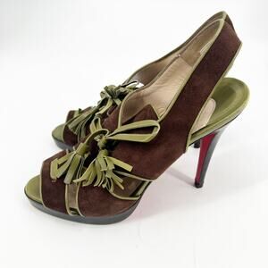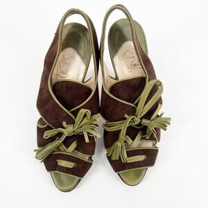 Christian Louboutin Vintage Sarah B Tassel Suede Heels Brown Green Size 39