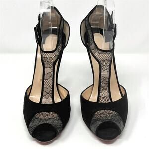 Christian Louboutin Voile 120 Lace Suede Black T-Strap Heels Size 39 EU