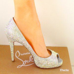 Christian Louboutin Very Prive Swarovski Custom Strass AB Crystal Pumps. EU 38 fits best as a US 7.5. Insole is 9 5/8 inch. Heel is 5 inches. Platform is 3/4 inch. Great condition. Bottoms have been touched up. Comes with box. 100% authentic. No retail price as these have been embellished.