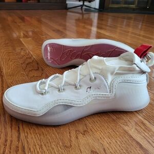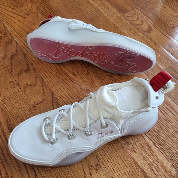 Stylish Christian Louboutin sneakers. White upper with red sole accents. Signature sole design. 100% authentic, brand new without box or dust bags. Made in Italy 🇮🇹, size 44. Pure leather.