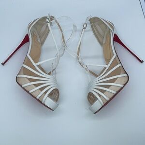 Christian Louboutin White leather Filamenta 120 Mesh Strappy heels peep toe 41.5