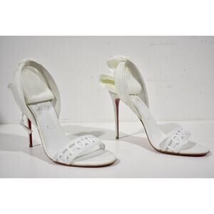 Christian Louboutin Wind Around 100 White Lace Up Tie Bridal Sandal Heel Pump 41