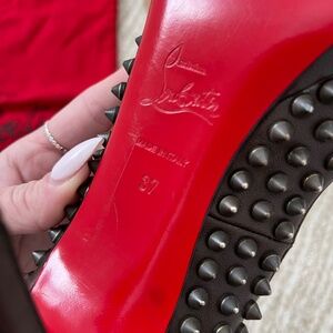 Christian Louboutin Yolanda Spikes size 37. Dark brown nappa leather with peep toe and sassy spikes. Dust bag included.