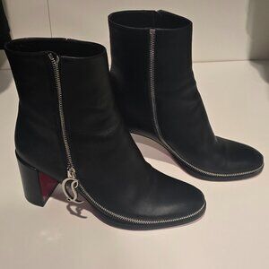 Adorable Louboutin ankle boots. The zipper appears to go around the entire boot, but is a normal zip with CL zip pulls. Only worn once. Comes with dust bags.