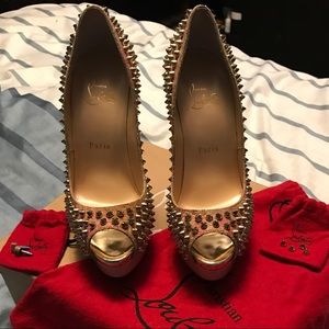 Christian Louboutin cork platform studded peep-toe
