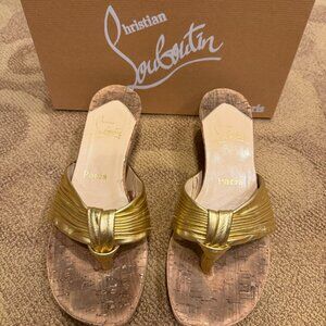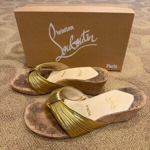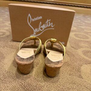 Christian Louboutin gold and cork wedge sandals. Size 9. Gold leather is in very good condition
