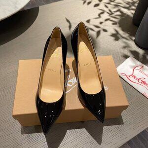 The Christian Louboutin So Kate Patent Leather Pointed Toe Pump is a stylish and elegant shoe designed for women. This slip-on pump features a pointed toe and a stiletto heel, making it perfect for special occasions like parties or cocktails.