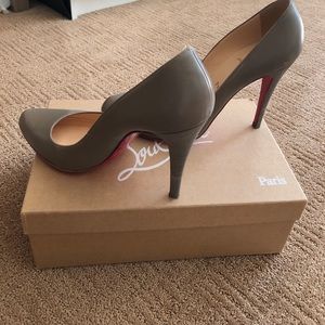 Gorgeous Christian Louboutin high heels grey tan in excellent condition. Worn only twice. Famous red sole and mat finish on heels. Perfect for day and night. Stunning and very flattering color. Sold with original box.