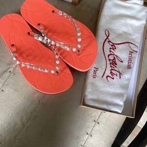 Christian Louboutin loubi flip Donna spike drag neon thong sandals sz 36 flat