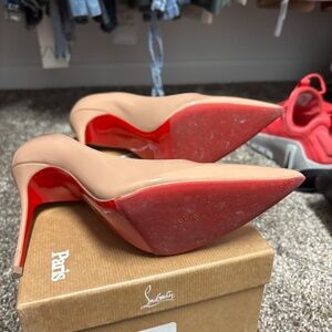 These pumps are in fair condition. Comes with original box and dust cloth. Please note there is a Knick in the leather on one of the heels