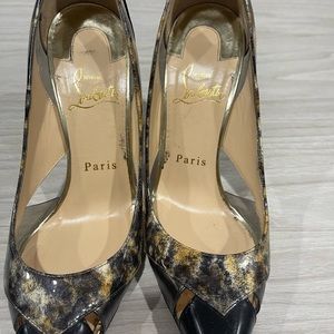 Christian Louboutin stiletto size 36 gold and black. Comes with Shoe box and shoe bag. Used but in great condition the bottoms can be painted.