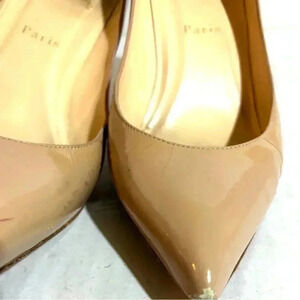 Christian Lounoitin nude size 38 pigalle follies pointed toe pump the shoe have marks scratches stains creasing need repair before placing an order please check take a moment to view all photos using feature for a closer look