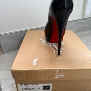 Sexy patent calf leather Christian Louboutin high heels. Lady Peep 150. Gently used. Comes with box, dust covers, and pouch with extra heel replacements. 100% Authentic