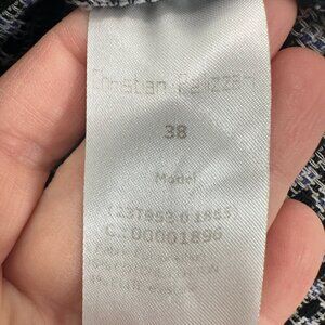 Christian Pellizzari Navy Blue Checkered Windowpane Peplum Crop Top Knit Blouse