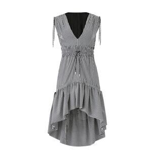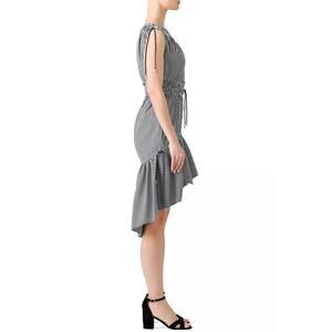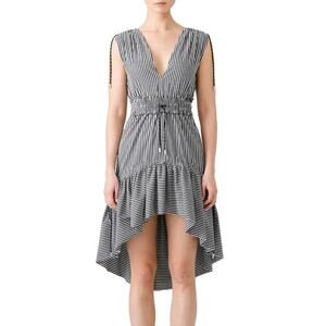 Christian Pellizzari Striped High Low Dress Sleeveless Ruffle Hem Black White S