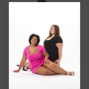 “Christian” Ruched Cotton Cut Out Dress in Fuschia from What Lo Wants