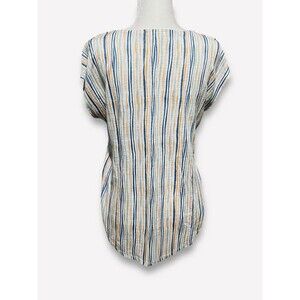 Christian Siriano 100% Linen Multicolor Striped Top-Cap Sleeves Women’s Medium