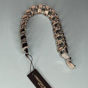 Christian Siriano Biker Bracelet Clasp Chunky Chain Link Silver Tone Met…