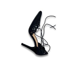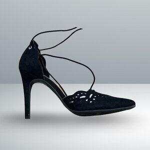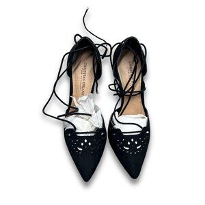 Christian Siriano Black Josephine Lace-Up Heels Size 8.5 Pointed Toe Cutout Desi