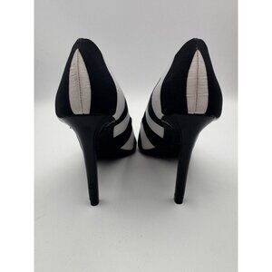 Christian Siriano Black and White Striped Stiletto Pumps, Size 6 Heels Shoes