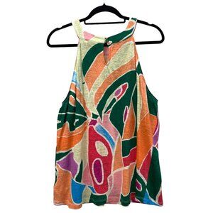 Christian Siriano Colorful Linen Top - great for vacation, tropical, White Lotus hotel