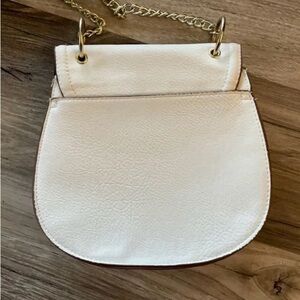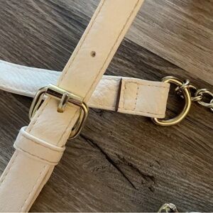 Chic and stylish cream crossbody bag by Christian Siriano. Features a sleek design with gold accents. Perfect for everyday use.