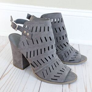Christian Siriano for Payless Gray Suede Women's Winter Block Heels. Faux suede heels with cutout front design and buckle strap.