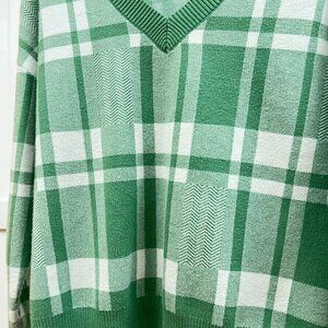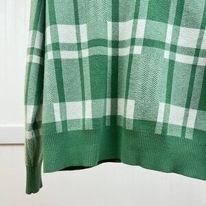 Christian Siriano Green White Plaid V-Neck Pullover Sweater Womens Large