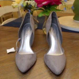 Christian Siriano in collaboration with Payless grey faux suede pointed toe d’Orsay 4” heels size 5.5. In like new condition as shown in photos. Very sexy understated shoe great for feeling powerful during a meeting or standing in the kitchen making dinner!