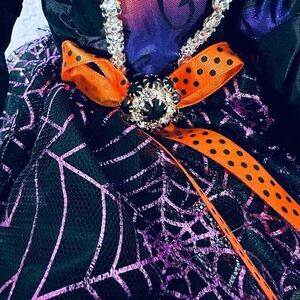 NWT lot of 2 Christian Siriano Halloween black purple and orange glamorous gothic fairy witch or wizard shelf sitter dolls. Sparkling crystal and glitter accented dresses. Great for a collector or to display as haunted house decor.