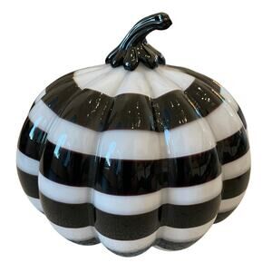 Christian Siriano Hand Blown Art Glass Pumpkin White Black Stripe Swirl 9x8 NEW