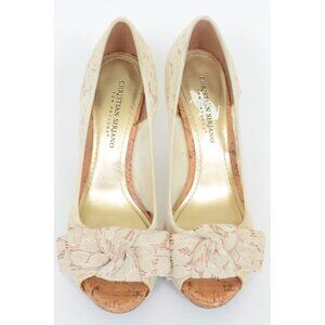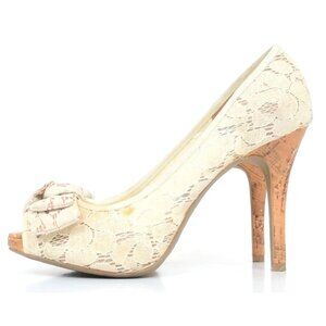 Christian Siriano Lace Peep Toe Cork Stiletto Heels Platform Women's 8.5B Sexy