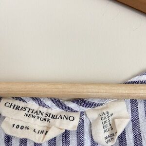Christian Siriano Linen Blue and White Boxy Blouse